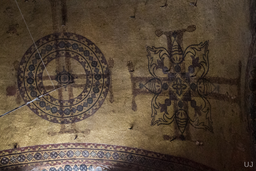 Крест. Где-то на втором этаже сохранились скандинаские руны, вероятно нацарапанные скандинавскими воинами из гвардии императора.