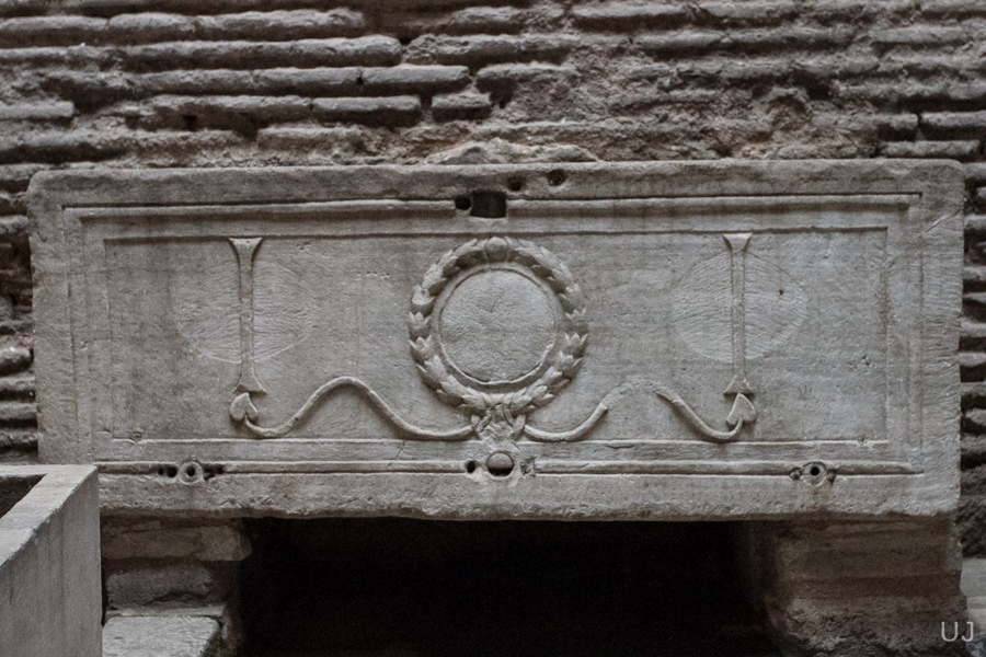 Археологические находки перед входом в базилику.